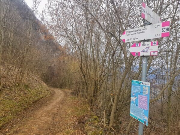 La partenza dell’itinerario è a Lonno, frazione del comune di Nembro in Valseriana. Superato il nucleo abitato, si raggiugono le ultime case dopo il campo sportivo dove si prende il sentiero 534. Si entra nel bosco di castagni seguendo l’antica Via Mercatorum che un tempo collegava Bergamo con la Valseriana e Val Bremabana. Superata una grotta con la statua della madonna si raggiunge il Colle di Olta e poi ai primi prati coltivati di Salmezza. Qui si continua verso destra su un’antica mulattiera che costeggia una cascina con archi in pietra per raggiungere le poche case di Salmezza, qui è nato il pittore Enea Salmeggia che lavorò nella bottega di Raffaello. Un ultimo sforzo porta alla terrazza panoramica di Santa Barbara, poco sopra le case, che offre una bellissima vista sulla conca, il Monte Podona e la Corna Bianca. Per il ritorno occorre intraprendere lo stesso sentiero fatto all’andata.