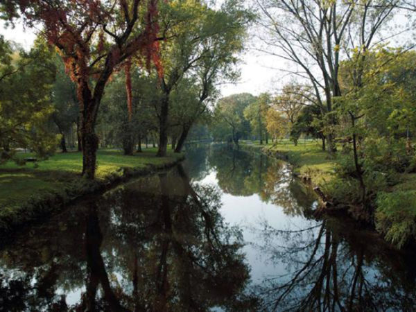 Il parco sorge a ridosso di viale Forlanini, di fronte all’aeroporto di Milano-Linate, e si connota fin dalla sua origine come spazio immerso nello scenario della vita rurale e destinato ad attività sportive e ricreative. Lo spazio presenta un disegno semplice composto da grandi aree agricole, viali alberati e asfaltati, distese di prati collocate in prevalenza lungo il viale Forlanini e la Tangenziale Est. A nord-est si trova il Laghetto Salesina che per l’abbondante vegetazione che lo circonda rappresenta un buon habitat per uccelli e pesci. La creazione del Parco Enrico Forlanini garantì la sopravvivenza di alcune strutture di interesse storico e paesaggistico come il Mulino Codovero e alcune antiche cascine. Se ne contano ancora undici; tra quelle di maggiore interesse si segnalano: la Cascina Cavriano, con portico tripartito e un affresco con colomba e ramoscello d’ulivo simbolo dell’Ospedale Maggiore e la Cascina Sant’Ambrogio, dove è ancora visibile la struttura absidale di una piccola chiesa del quattordicesimo secolo.