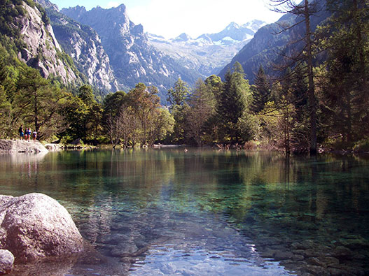 Da Cataeggio si sale a Filorera e si imbocca la strada che conduce in Valle di Sasso Bisolo e a Preda Rossa, seguendo le indicazioni per il Rifugio Ponti. Oltrepassato il centro polifunzionale della montagna, si attraversa il torrente su un ponte, osservando a destra l’antico ponte in pietra. Seguendo le indicazioni di bandierine e cartelli con sigla S.I. ci si ritrova presso la grande frana di Valbiore (1234 m). Dopo il primo tornante si prosegue per un breve tratto fino a trovare un cartello che indica la partenza del sentiero per Granda. Si imbocca il sentiero che sale verso destra nel bosco, tracciando una lunga diagonale che conduce alle baite Taiada (1492 m), da cui si gode di un’ottima visuale sulla cima del Cavalcorto ed i Pizzi del Ferro. Si prosegue poi salendo lungo i prati alle spalle delle baite fino a raggiungere l’Alpe Granda. Traversando in salita verso sinistra, lungo un avvallamento erboso, si raggiunge il Rifugio Alpe Granda (1680 m).