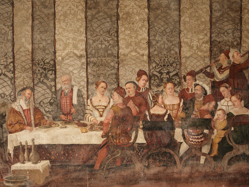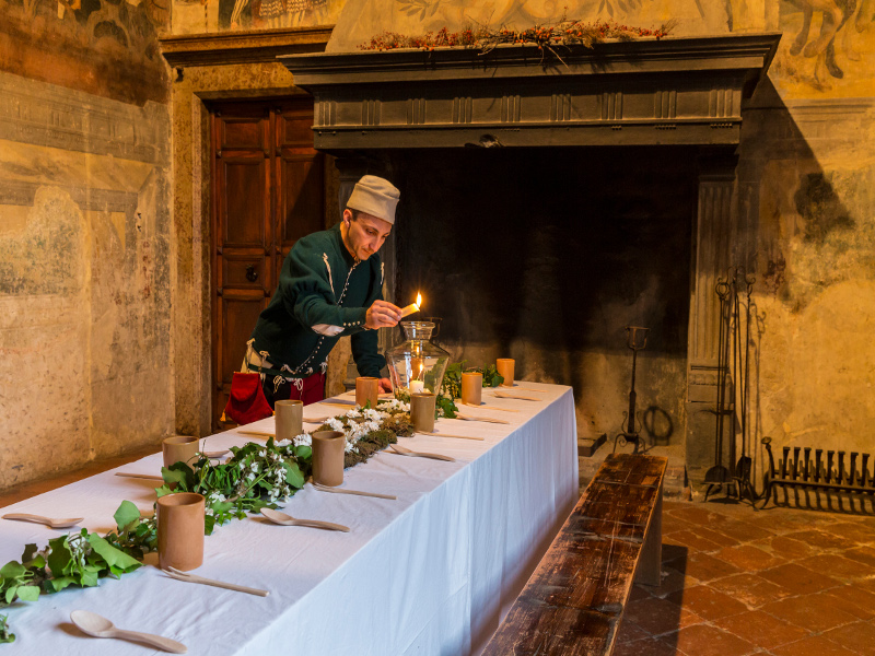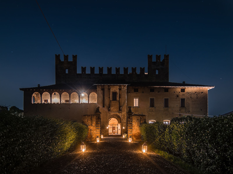 Nel Parco del Serio, a pochi chilometri da Bergamo, sorge il castello di Malpaga, una delle più importanti costruzioni lombarde del Quattrocento per rilevanza storica, architettonica e artistica. Fu l’antica dimora signorile del Capitano della Repubblica di Venezia Bartolomeo Colleoni, che lo acquistò nel 1456 ristrutturando una preesistente rocca trecentesca e arricchendola con pregevoli affreschi. L’elegante cortile d’onore e il Salone dei Banchetti, col suo ciclo narrativo cinquecentesco che illustra la visita di Re Cristiano I di Danimarca avvenuta nel 1471, ospitano vere e proprie “fotografie d’epoca”, realizzate dai maestri del realismo lombardo Marcello Fogolino e “Il Romanino”. Al piano nobile troviamo raffinati affreschi quattrocenteschi nello stile del “gotico cortese”, eseguiti da maestranze francesi provenienti dalla Borgogna e dipinti cinquecenteschi a carattere sacro e mitologico di Lattanzio Gambara, Bonifacio Bembo e Giambattista Castello. Notevoli le scene mitologiche classicheggianti del lucchese Pietro Ricchi che impreziosiscono alcune sale del piano terra.