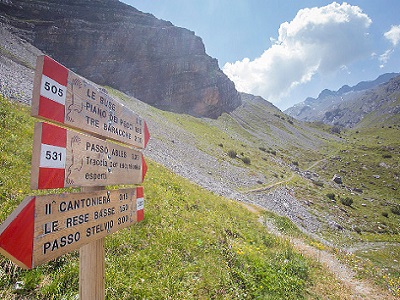 Dalla strada dello Stelvio imboccando il sentiero S505 si può percorrere un itinerario di media difficoltà lungo circa 9 chilometri. Tra trincee, postazioni e strade militari della Prima Guerra Mondiale questo percorso costituisce una bella passeggiata immersa nella natura e nella storia. Le trincee, che un tempo dovevano riparare dal fuoco nemico, oggi accompagnano gli escursionisti che partono dal tornante sopra la II Cantoniera, passano per la località Le Buse, raggiungendo Pian Pecci e arrivando infine alla località Palone dopo il Passo del Crap dell’Aquila.