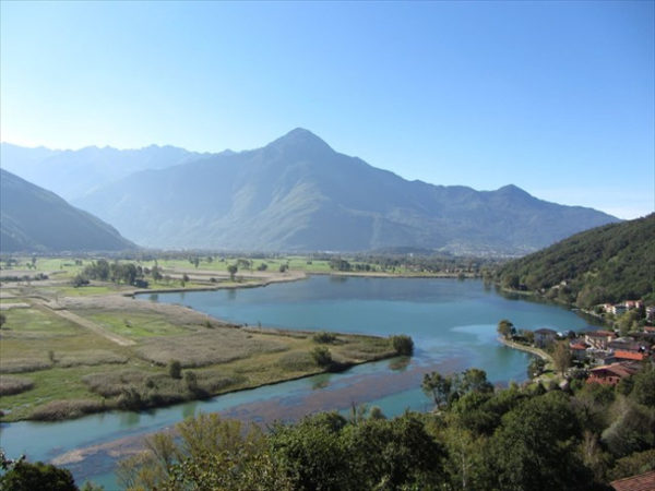 La passeggiata panoramica sul Pian di Spagna parte da piazza Cesare Battisti a Sorico, in provincia di Como. Si imbocca la stradina di asfalto rosso parallela alla statale (segnavia chiesa di San Miro/Dascio/Via dei Monti Lariani) e, dopo aver attraversato due ponticelli, si prosegue su una mulattiera che parte ai piedi della torre di Sorico, dove si può anche osservare la grotta in cui dimorò San Miro. La strada spiana leggermente per poi salire fino alla fonte di San Miro, un’elegante edicola della fine del Cinquecento. Un’ultima salita e si arriva al Santuario di San Miro, poggio dal quale si ammira un panorama stupendo sul primo tratto del Lago di Como. Il cammino riprende sulla mulattiera dietro la chiesa, prima in salita fino a Corzone e poi discendendo fino a Masina. Si può poi scegliere se tornare subito a Sorico, raggiungibile seguendo una mulattiera (segnavia MTB Sorico), oppure proseguire fino a Dascio. In questo caso occorre seguire la strada asfaltata fino ai Prati Meriggi dove, all’altezza di una torre – cabina elettrica si deve imboccare la mulattiera seguendo il segnavia Dascio/Albonico/San Fedelino. Giunti a Dascio, si segue la mulattiera per Albonico/Stagni di Peschiera/San Fedelino che porta al sasso di Dascio. Si torna indietro fino a un gruppo di case e, giunti di fronte alla fontana, si svolta a sinistra su un sentiero che attraversa abitazioni e vigneti fino alla chiesa di San Biagio. Si riprende la mulattiera dell’andata (segnavia MTB Sorico) e dopo circa 1 Km si segue per Ponte Passo/Sorico che conduce al Ponte del Passo. Si imbocca infine la pista ciclo pedonale lungo il fiume Mera fino a Sorico.
